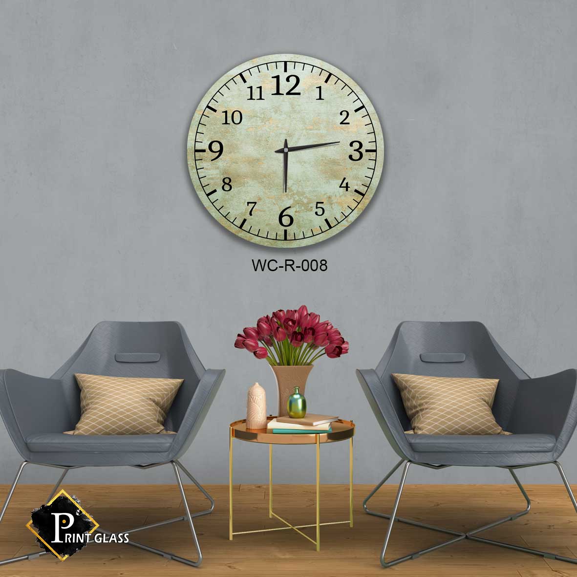 שעון קיר יוקרתי לסלון מזכוכית ברקע ירוק. מדגם – WC-R-008. שעון זכוכית עגול לקיר בסלון ברקע שיש ירוק. מגיע עם מחוגים שקטים גדולים ואיכותיים. מתאים לעיצוב הסלון או המשרד. מתאים גם לעיצוב העסק בצורה יוקרתית וייחודית , זכוכית מחוסמת 6מ"מ הדפסה על זכוכית בטכנולוגיה UV חדשנית.