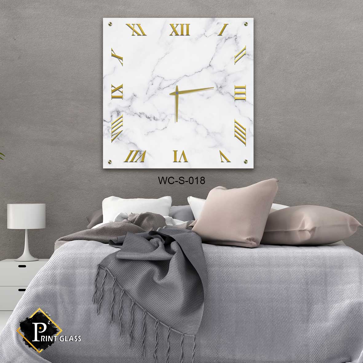 שעון קיר לבן לסלון מזכוכית ברקע שיש זהב. מדגם – WC-S-018. שעון זכוכית מרובע לקיר בסלון ברקע שיש זהב. מגיע עם מחוגים שקטים גדולים ואיכותיים. מתאים לעיצוב הסלון או המשרד. מתאים גם לעיצוב העסק בצורה יוקרתית וייחודית , זכוכית מחוסמת 6מ"מ הדפסה על זכוכית בטכנולוגיה UV חדשנית.