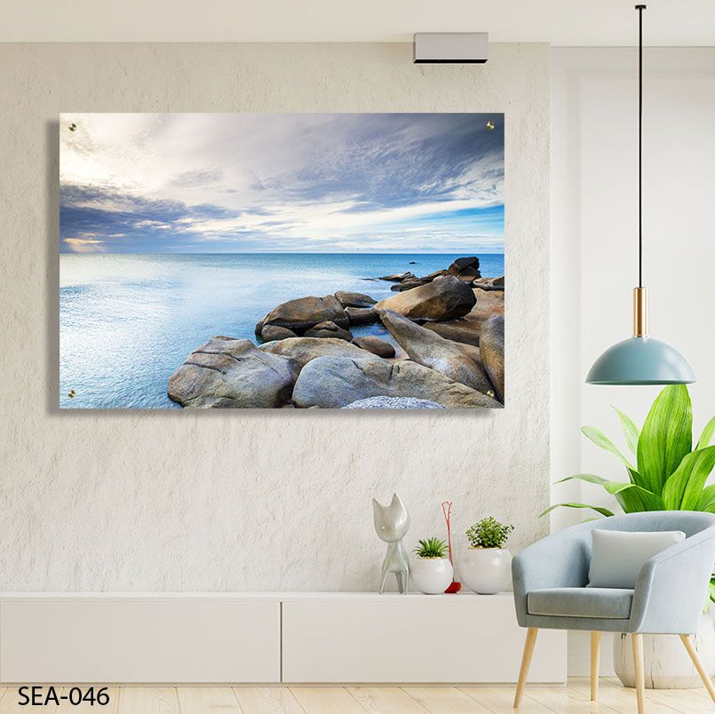 תמונה על זכוכית המציגה נוף ים רגוע, עם סלעים בולטים ושמים מעוננים בגוונים רכים. ההרמוניה בין הגוונים הכחולים של הים לשמיים העננים יוצרת אווירה של שלווה וטבעיות. הדפסה על זכוכית זו מעניקה לתמונה מראה מבריק ועמוק המעצים כל פינה בסלון. תמונות זכוכית הן בחירה מתקדמת לעיצוב קירות, במיוחד תמונות זכוכית לסלון, בהן נוף ים כזה מוסיף מגע של רוגע ושלווה לחלל. איכות התמונה ואפקט הזכוכית מתבטאים בהדגשת הצבעים והפרטים, ויוצרים חוויית צפייה ייחודית ומרגיעה.