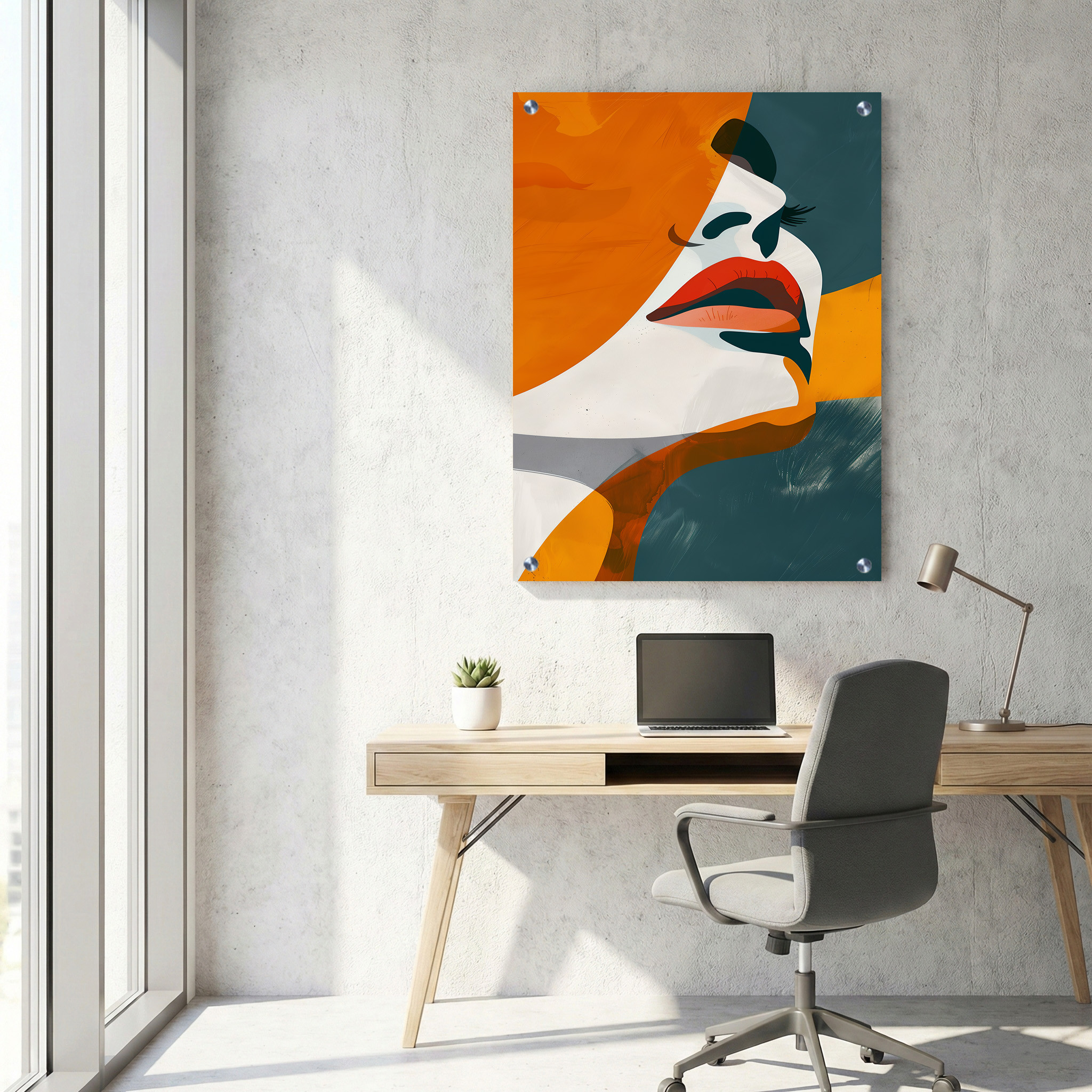 תמונת זכוכית זו מציגה פנים אישה בקלוז-אפ בסגנון פופ ארט מינימליסטי, עם שילוב צבעים מרהיב של כתום וירוק. ההדפסה על זכוכית מביאה לידי ביטוי את הצבעים החזקים והקומפוזיציה המלבנית לאורך, המעניקה מראה מודרני ומתוחכם. תמונה זו מתאימה במיוחד למרחבים מקצועיים המעוניינים להוסיף נגיעה עיצובית עדינה ואמנותית דרך תמונת זכוכית איכותית. עיצוב הפופ ארט המינימליסטי משתלב בצורה טבעית בתוך קטגוריית תמונות זכוכית למשרד, ומדגיש את היופי בפרטים ופשטות הקווים.