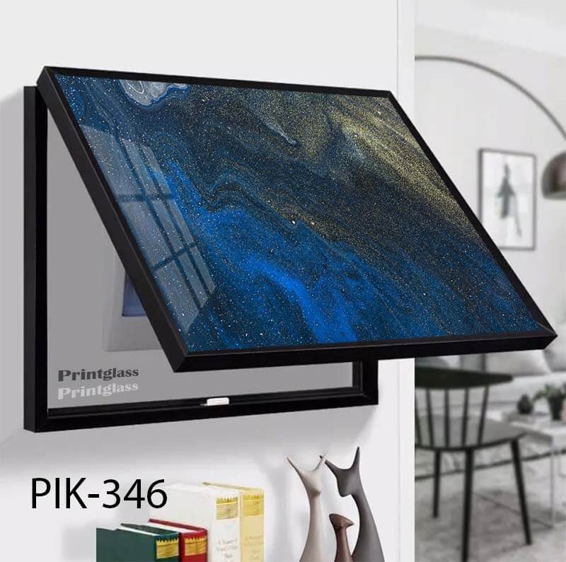 כיסוי ארון חשמל ותקשורת עם תמונה מזכוכית של יקום כחול. דגם PIN-346. לעיצוב כיסוי ארון חשמל הבייתי שלכם. מגיע עם מסגרת אלומיניום חזקה ושני בוכנות אשר מחזיקות את המסגרת. הכיסוי מודפס על זכוכית מחוסמת 6מ"מ. הדפסת תמונות על זכוכית בטכנולוגיה UV חדשנית ובאיכות גובהה.