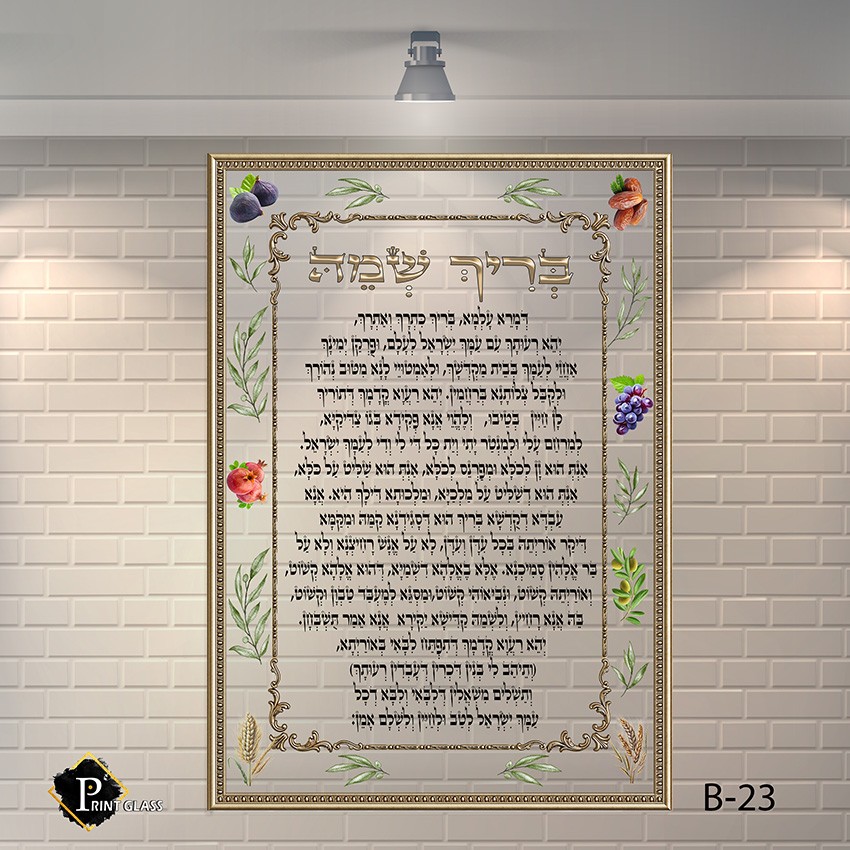 שלטים ותמונות לבית הכנסת מודפס על גבי זכוכית בעובי 6ממ זכוכית מחוסמת ובטיחותית, ניתן להכין מגוון רחב של מידות וסוגי שלטים בהתאמה אישית, לדוגמא ברכת המוציא, שמע ישראל ושלטי חס ורחמים, מזמור לדוד, בריך שמה, ברכות הכהנים, מודים דרבנן, קדיש על ישראל, למנצח, ועוד הרבה ברכות עם תוספת עילוי נשמת הנפטרים והיקרים שלכם אם יש לכם רעיון לפסוק שיודפס על השלט, אתם כמובן יכולים לפנות אלינו ואנו נדאג לתת מענה אנושי וליווי אישי עד לקבלת העיצוב המושלם של בית הכנסת.