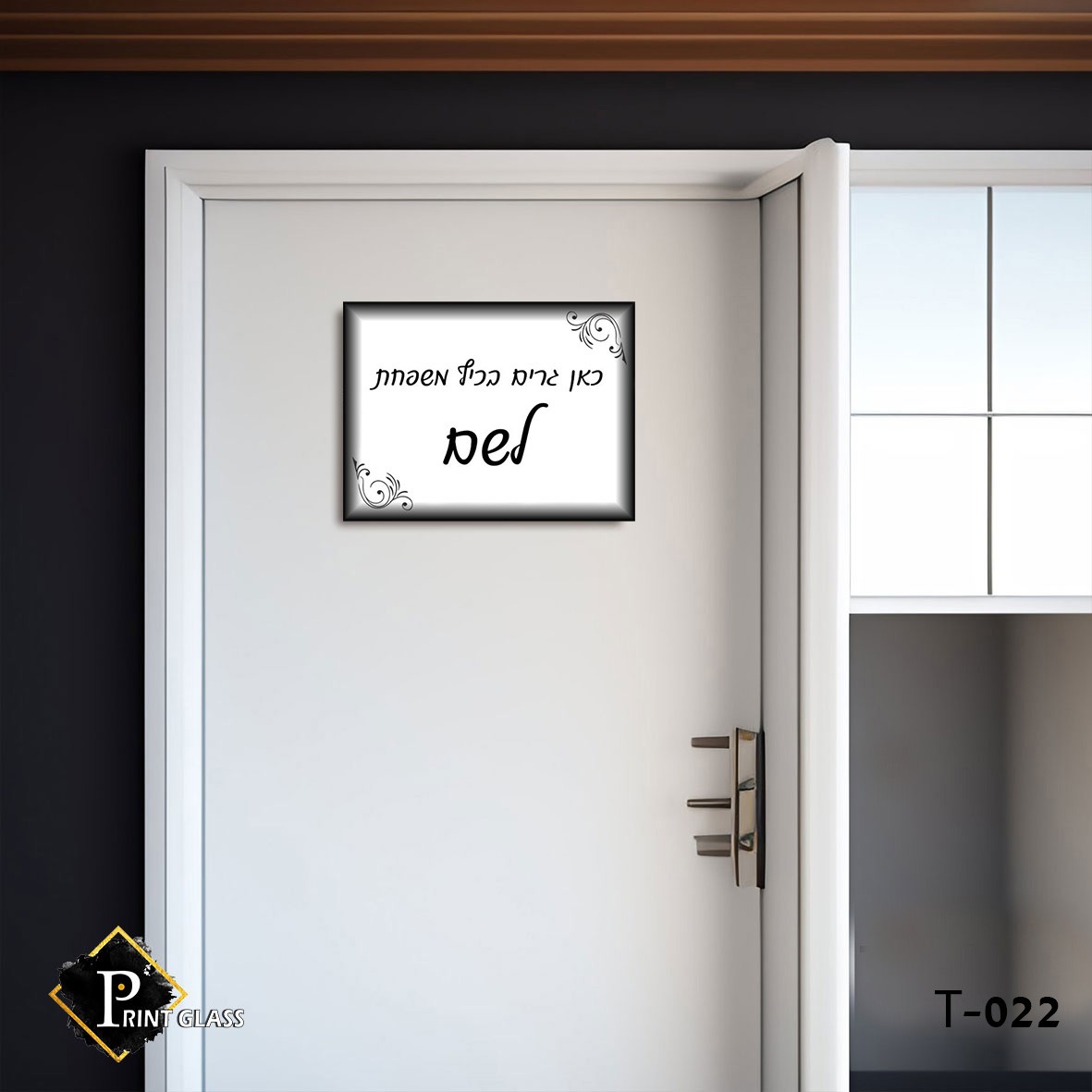 שלט כניסה לבית מזכוכית רקע אפור. דגם – S-022.