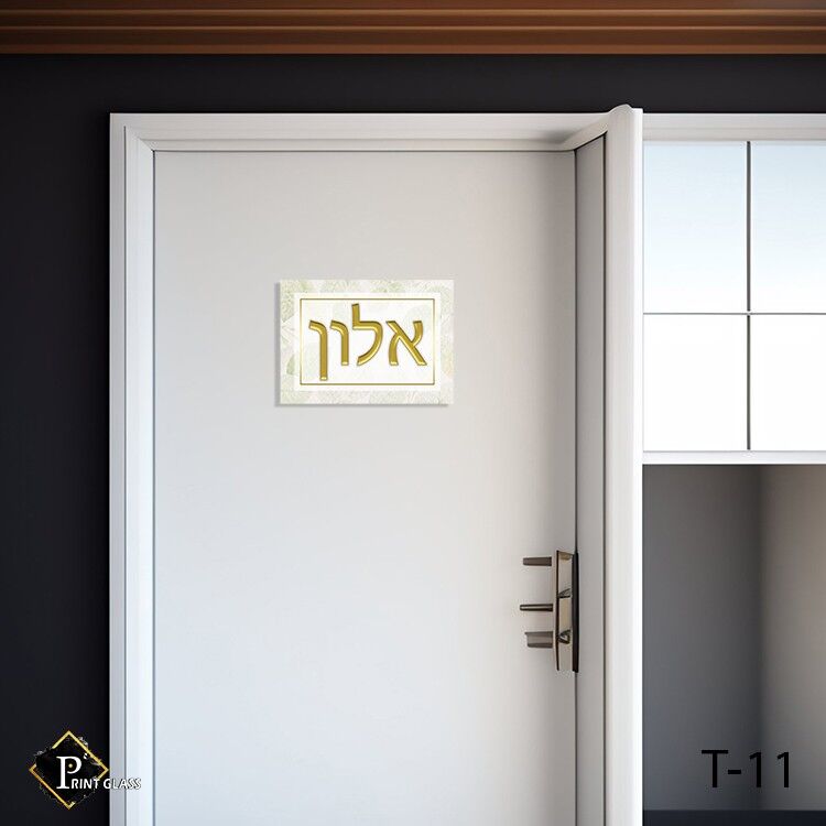 שלט כניסה לבית בצבע לבן זהב. דגם – T-11.