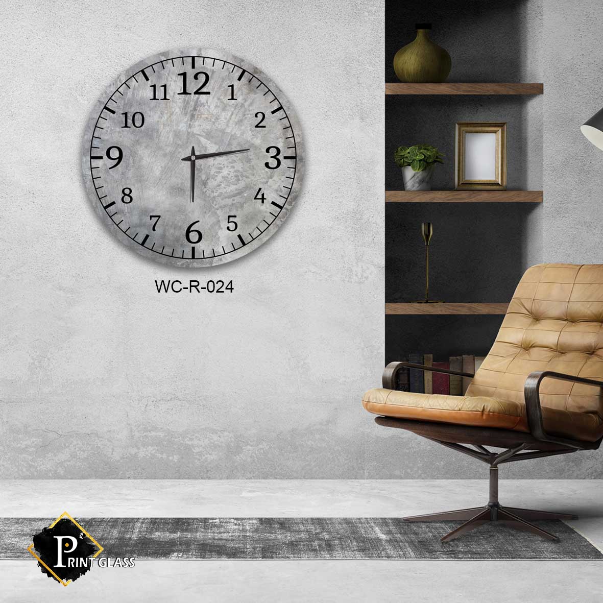 שעון קיר דקורטיבי למשרד מזכוכית ברקע אפור שחור. מדגם – WC-R-024. שעון זכוכית עגול לקיר במשרד ברקע אפור שיש. מגיע עם מחוגים שקטים גדולים ואיכותיים. מתאים לעיצוב הסלון או המשרד. מתאים גם לעיצוב העסק בצורה יוקרתית וייחודית , זכוכית מחוסמת 6מ"מ הדפסה על זכוכית בטכנולוגיה UV חדשנית.