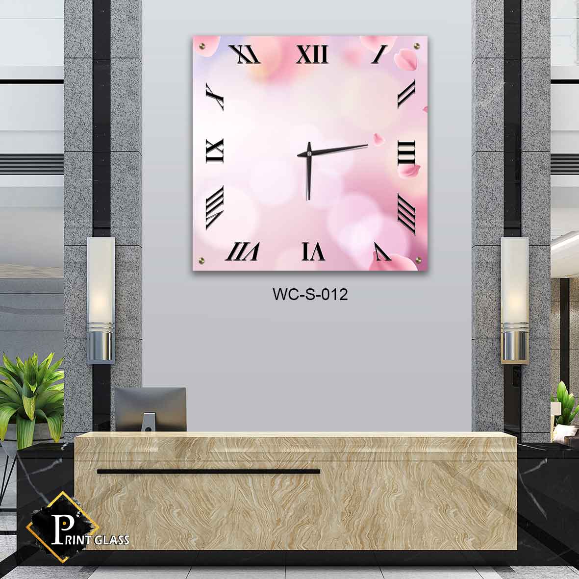 שעון קיר לחדר שינה מזכוכית ברקע עלים ורודים. מדגם – WC-S-012. שעון זכוכית מרובע לקיר בחדר שינה ברקע של עלים ורודים. מגיע עם מחוגים שקטים גדולים ואיכותיים. מתאים לעיצוב הסלון או המשרד. מתאים גם לעיצוב העסק בצורה יוקרתית וייחודית , זכוכית מחוסמת 6מ"מ הדפסה על זכוכית בטכנולוגיה UV חדשנית.