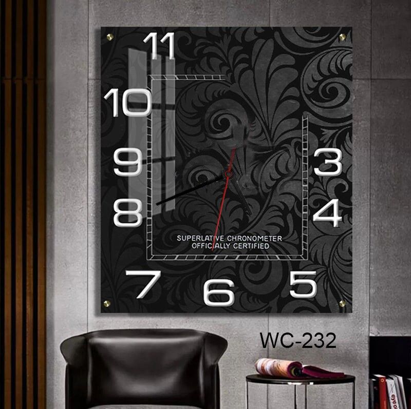 שעון קיר יוקרתי מזכוכית ברקע שחור פרחוני, מדגם – WC-232. שעון זכוכית מלבני ויוקרתי לסלון ברקע שחור פרחוני עם מספרים בצבע לבן. מגיע עם מחוגים גדולים. כולל מנגנון איכותי.