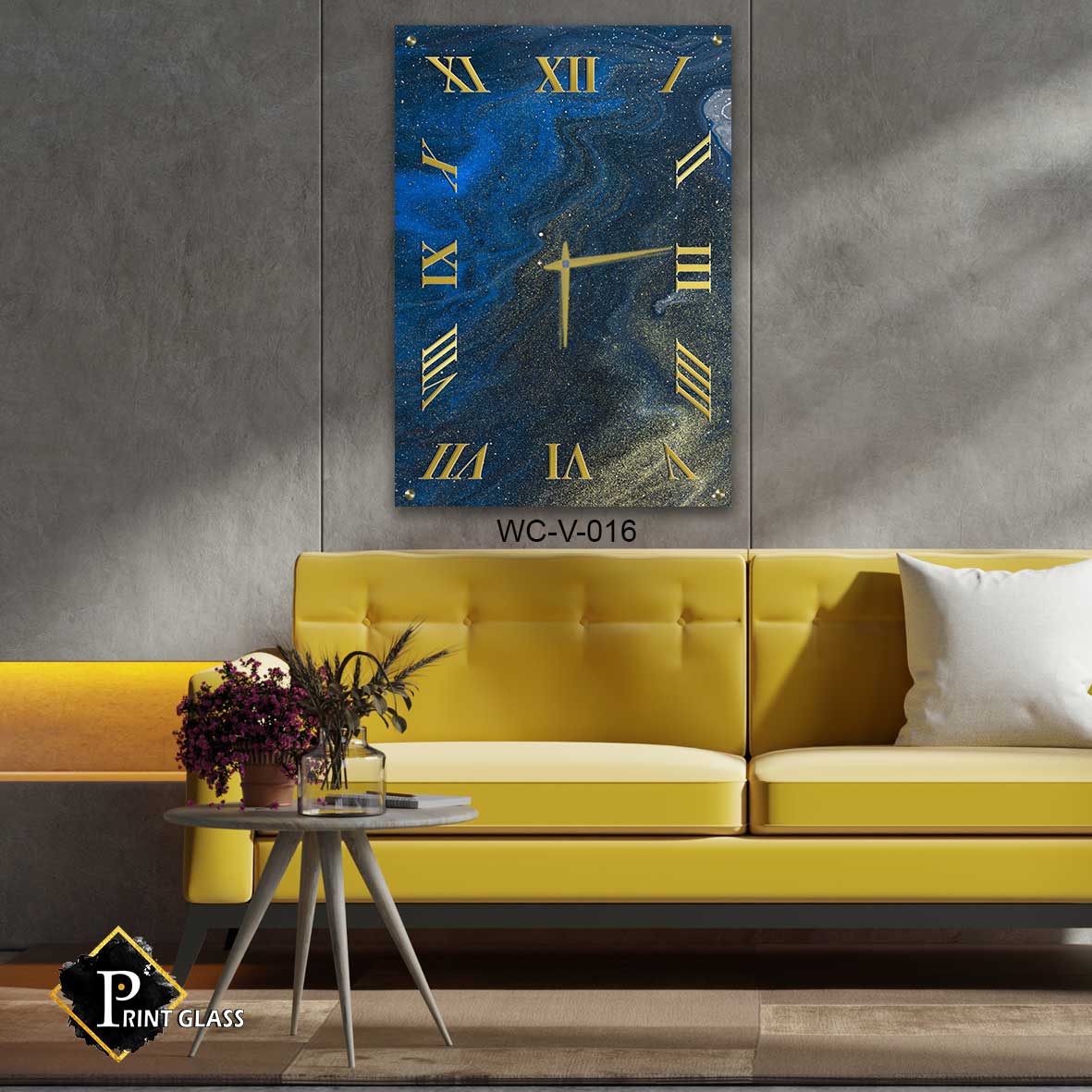 שעון קיר מודרני למטבח מזכוכית של רקע חלל וזהב. מדגם – WC-V-016. שעון זכוכית מלבני מודרני לקיר במטבח ברקע חלל וזהב ומספריים רומיים. מגיע עם מחוגים שקטים גדולים ואיכותיים. מתאים לעיצוב הסלון או המשרד. מתאים גם לעיצוב העסק בצורה יוקרתית וייחודית , זכוכית מחוסמת 6מ"מ הדפסה על זכוכית בטכנולוגיה UV חדשנית.