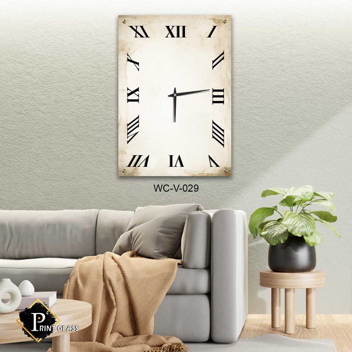 שעון קיר מעוצב לחדר שינה מזכוכית של רקע שיש חום. מדגם – WC-V-029. שעון זכוכית מלבני לקיר בחדר שינה ברקע שיש חום ומספריים רומיים. מגיע עם מחוגים שקטים גדולים ואיכותיים. מתאים לעיצוב הסלון או המשרד. מתאים גם לעיצוב העסק בצורה יוקרתית וייחודית , זכוכית מחוסמת 6מ"מ הדפסה על זכוכית בטכנולוגיה UV חדשנית.