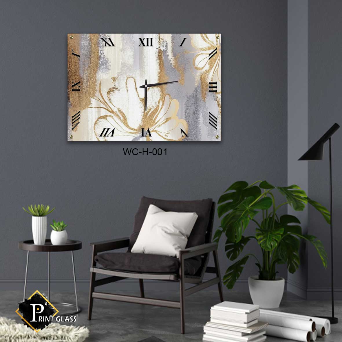 שעון קיר מעוצב לסלון מזכוכית אפור זהב. דגם WC-H-001. שעון זכוכית מלבני לקיר בסלון ברקע אבסטרקט אפור זהב עם מספריים רומים. מגיע עם מחוגים שקטים גדולים ואיכותיים. לעיצוב הבית והסלון או עיצוב לובי בניין. מתאים גם לעיצוב העסק בצורה יוקרתית וייחודית , זכוכית מחוסמת 6מ"מ הדפסה על זכוכית בטכנולוגיה UV חדשנית.