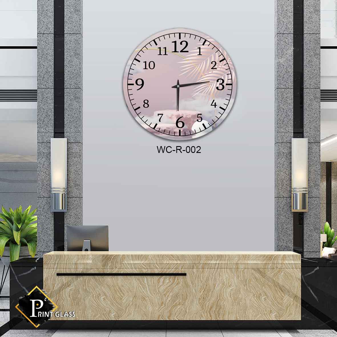 שעון קיר דקורטיבי לחדר שינה מזכוכית רקע נוף ורוד. מדגם – WC-R-002. שעון זכוכית עגול לקיר בחדר שינה ברקע נוף ורוד. מגיע עם מחוגים שקטים גדולים ואיכותיים. מתאים לעיצוב הסלון או המשרד. מתאים גם לעיצוב העסק בצורה יוקרתית וייחודית , זכוכית מחוסמת 6מ"מ הדפסה על זכוכית בטכנולוגיה UV חדשנית.