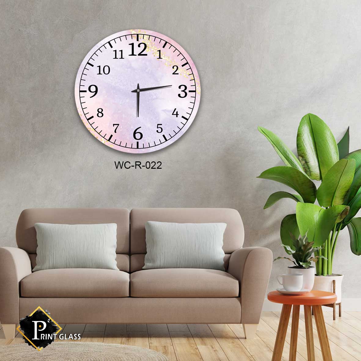 שעון קיר יוקרתי למשרד מזכוכית ברקע שיש ורוד. מדגם – WC-R-022.שעון זכוכית עגול לקיר במשרד ברקע שיש ורוד. מגיע עם מחוגים שקטים גדולים ואיכותיים. מתאים לעיצוב הסלון או המשרד. מתאים גם לעיצוב העסק בצורה יוקרתית וייחודית , זכוכית מחוסמת 6מ"מ הדפסה על זכוכית בטכנולוגיה UV חדשנית.