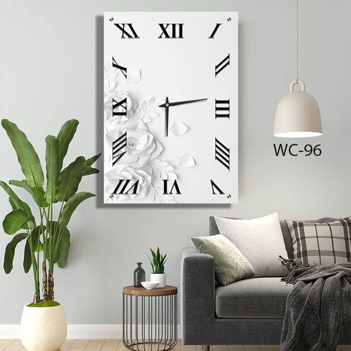 שעון קיר מיוחד מעוצב לסלון ברקע לבן ופרחים. דגם WC-96. שעון זכוכית מלבני לקיר בסלון ברקע לבן חלק ופרחים בולטים. מגיע עם מחוגים שקטים גדולים ואיכותיים. מתאים לעיצוב הסלון או המשרד. מתאים גם לעיצוב העסק בצורה יוקרתית וייחודית , זכוכית מחוסמת 6מ"מ הדפסה על זכוכית בטכנולוגיה UV חדשנית.