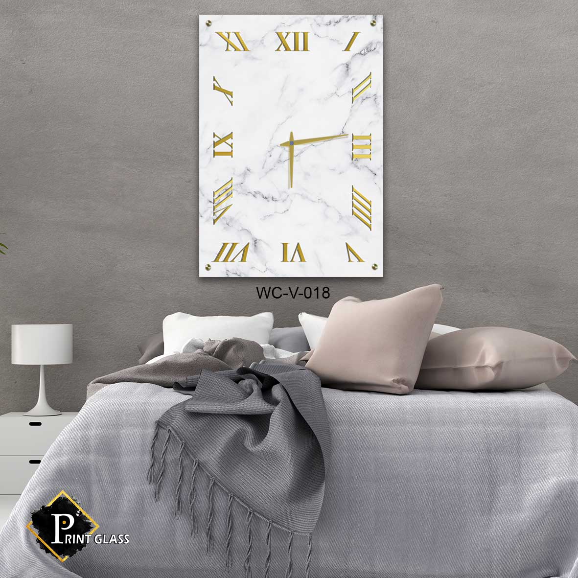 שעון קיר לסלון מזכוכית של רקע שיש לבן וזהב. מדגם – WC-V-018. שעון זכוכית מלבני לקיר בסלון ברקע שיש לבן זהב ומספריים רומיים. מגיע עם מחוגים שקטים גדולים ואיכותיים. מתאים לעיצוב הסלון או המשרד. מתאים גם לעיצוב העסק בצורה יוקרתית וייחודית , זכוכית מחוסמת 6מ"מ הדפסה על זכוכית בטכנולוגיה UV חדשנית.