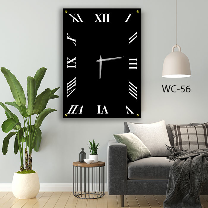 שעון קיר שחור מזכוכית לחדר שינה. מדגם -WC-56. שעון זכוכית מלבני שחור ומספרים רומיים בצבע לבן לחדר שינה. מגיע עם מחוגים גדולים. כולל מנגנון איכותי.