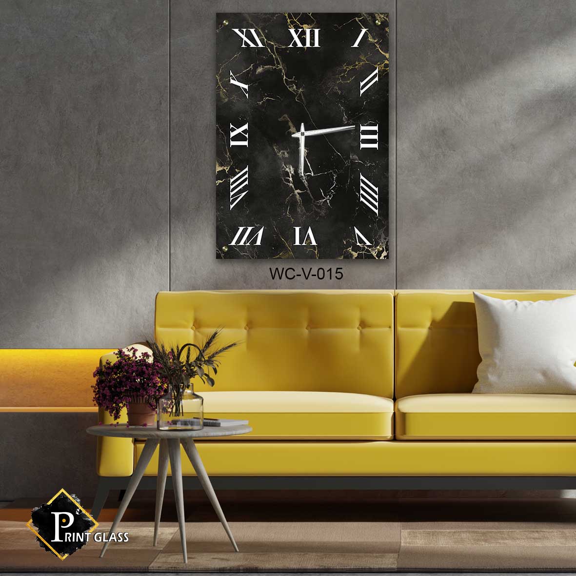 שעון קיר שחור לחדר שינה מזכוכית ברקע שיש ברקים. מדגם – WC-V-015. שעון זכוכית מלבני לקיר בחדר שינה ברקע שיש ברקים ומספריים רומיים. מגיע עם מחוגים שקטים גדולים ואיכותיים. מתאים לעיצוב הסלון או המשרד. מתאים גם לעיצוב העסק בצורה יוקרתית וייחודית , זכוכית מחוסמת 6מ"מ הדפסה על זכוכית בטכנולוגיה UV חדשנית.