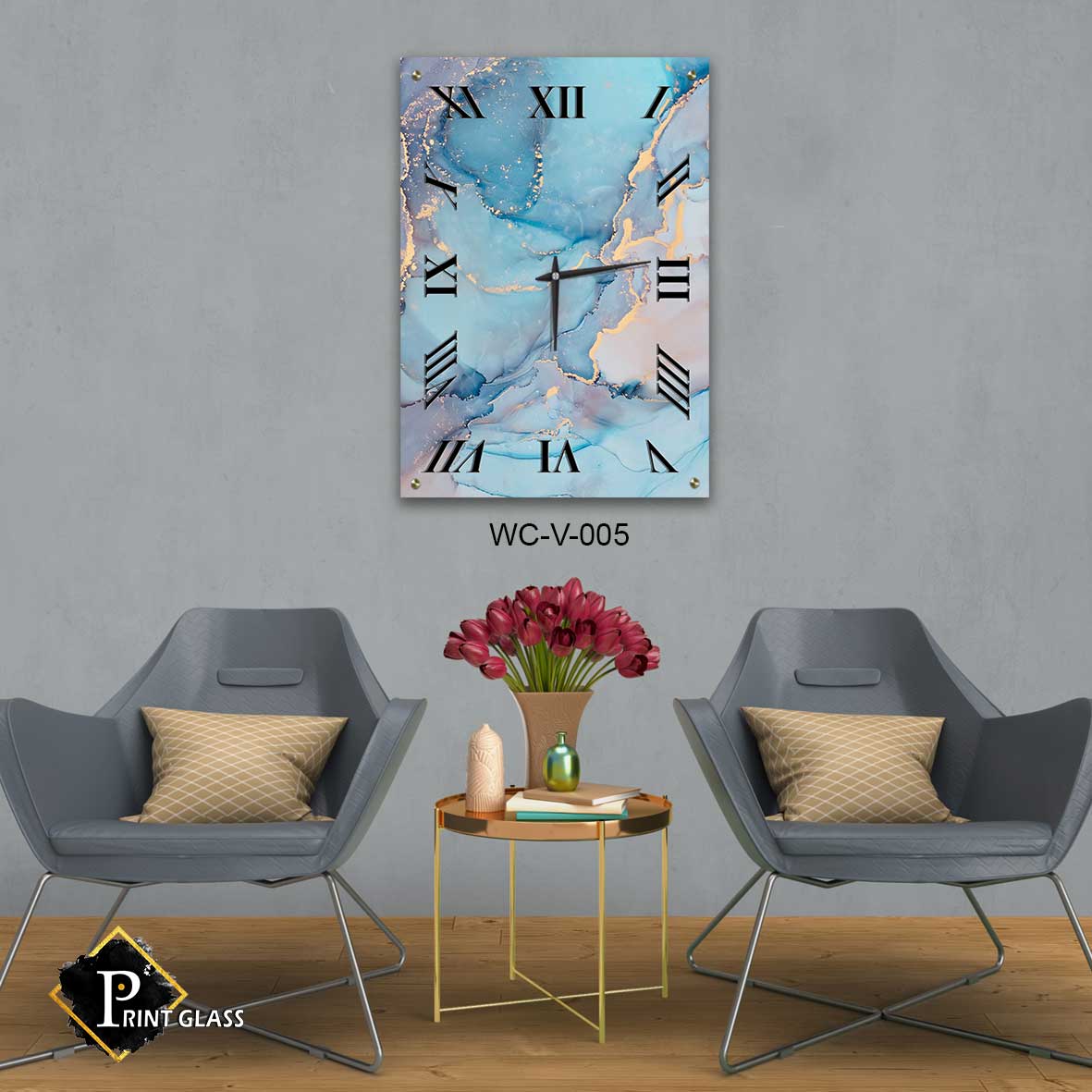שעון קיר מעוצב למשרד מזכוכית של אבסטרקט שיש כחול. מדגם – WC-V-005. שעון זכוכית מלבני לקיר במשרד ברקע אבסטרקט כחול שיש ומספריים רומיים. מגיע עם מחוגים שקטים גדולים ואיכותיים. מתאים לעיצוב הסלון או המשרד. מתאים גם לעיצוב העסק בצורה יוקרתית וייחודית , זכוכית מחוסמת 6מ"מ הדפסה על זכוכית בטכנולוגיה UV חדשנית.