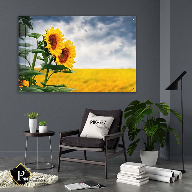 הדפסה על זכוכית מדהימה המציגה שני חמניות גדולות בקדמת שדה רחב ידיים בצבע צהוב חם, תחת שמיים מעוננים עם נגיעות של אפור ולבן שמוסיפים עומק ואווירה. קומפוזיציה מלבנית לרוחב המדגישה את היופי הטבעי והפסטורלי של הפרחים והשדה הסובב אותם. תמונת זכוכית זו מביאה חיות ותחושת טבע מרגיעה למשרד, ומאפשרת להנות מצבעוניות וחיוניות בכל שעה של היום. תמונות זכוכית למשרד מסוג זה הן פתרון מושלם להוספת צבע וטבעיות לחלל העבודה, תוך שמירה על מראה מודרני ואלגנטי. תמונות זכוכית הללו בולטות בזכות איכות ההדפסה שנעשית בזהירות מרבית, וכך נוצרה תמונה על זכוכית עם פרטים חדים וצבעים עשירים המתאימים לכל משרד.