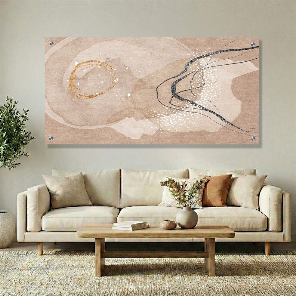 תמונת זכוכית זו מציגה קומפוזיציה אבסטרקטית מינימליסטית עם צורות מעוגלות בצבעי בז'-ורוד עדין, המתוחכמים בנגיעות של טבעת זהב ונקודות לבנות נוצצות היוצרות אפקט ייחודי ומרגיע. ההדפסה על זכוכית מעניקה לתמונה מראה שקוף ועמוק, תוך שמירה על חדות הצבעים והטקסטורה הרכה שלה. תמונות זכוכית לסלון מסוג זה משתלבות נהדר בעיצוב המודרני ומעניקות אווירה נעימה ואלגנטית לחלל. זוהי תמונה על זכוכית פנורמית לרוחב, המשלבת סגנון עדין עם אמירה אומנותית אותנטית. תמונת זכוכית איכותית זו היא בחירה מושלמת לאהוב את הרגעים השקטים והיפים בבית, תוך הבאת אלמנט של אמנות מודרנית ותחכום לעיצוב.