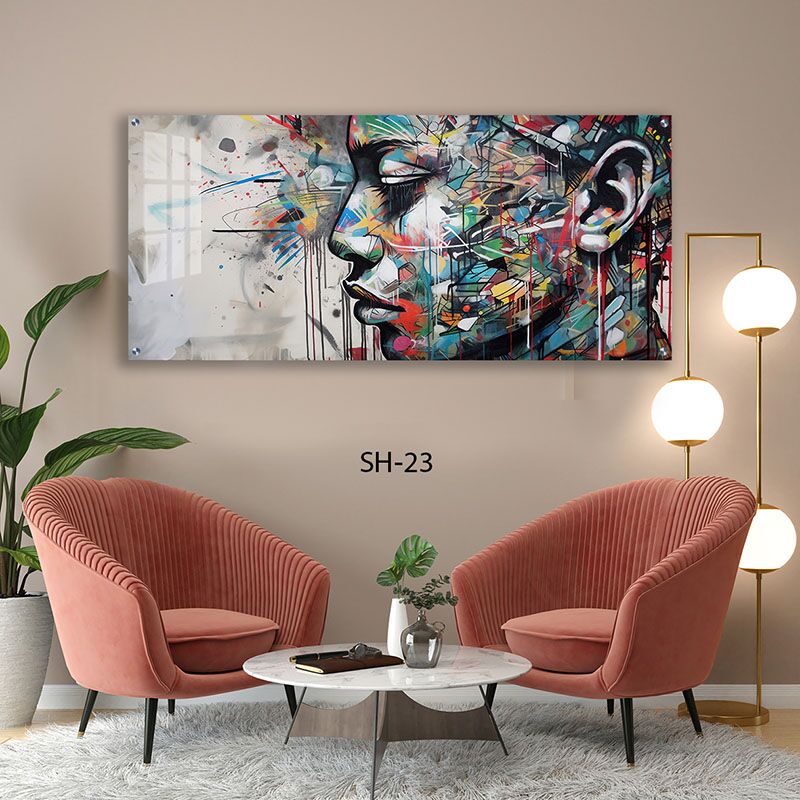 תמונת זכוכית זו מציגה דיוקן פרופיל אמנותי בסגנון אבסטרקט וגרפיטי עם כתמי צבע ססגוניים עשירים ומגוונים. באמצעות הדפסה על זכוכית נוצרת יצירה מיוחדת במינה שמאפשרת שילוב מדויק בין אמנות מודרנית לקווים גראפיים חזקים, המשלבים צבעוניות מרהיבה וקומפוזיציה פנורמית לרוחב שמוסיפה עומק ותנועה לתמונה. היצירה מתאימה לתמונות זכוכית לסלון המעוניינים להוסיף טאץ' עכשווי וססגוני עם השפעות אמנותית חזקה, ומדגישה את האפשרויות המרהיבות של תמונה על זכוכית כפריט עיצובי ואמנותי.