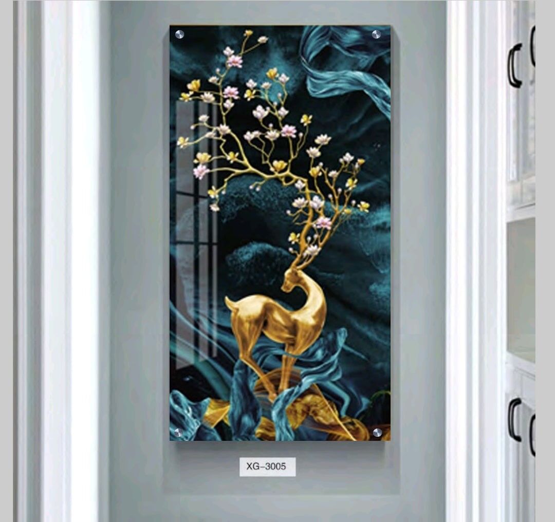 תמונת זכוכית לסלון – XG-3005. תמונה על זכוכית איכותית בעיצוב מרהיב המודפסת ישירות על זכוכית מחוסמת בטכנולוגיית UV מתקדמת. הדפסה על זכוכית זו מעניקה עומק, חדות ותחושת תלת מימד עוצמתית במיוחד. תמונת זכוכית זו משתייכת לקולקציה ייחודית של תמונות מודפסות על זכוכית, המיועדות לעיצוב מרהיב של הבית או העסק. תמונות זכוכית הן הבחירה האידיאלית למי שמחפש שילוב של יוקרה, חדשנות ונוכחות עיצובית יוצאת דופן. המוצר ניתן להתאמה אישית מלאה – ניתן לשנות גודל, צבעוניות או לבקש עיצוב ייחודי בהתאם לצרכים שלכם. תמונה זו מהווה מתנה מושלמת לחנוכת בית, משרד חדש, או כפריט עיצובי מרשים לכל חלל. הדימוי של האייל מוסיף כוח, יציבות ונוכחות.