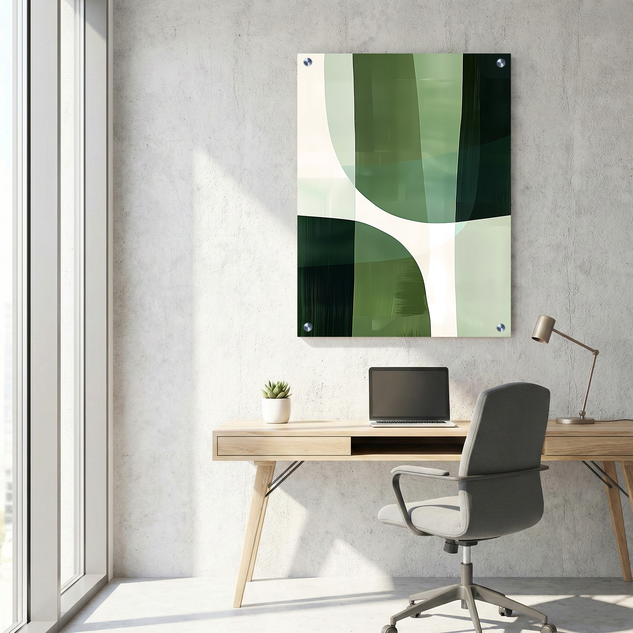 תמונת זכוכית זו מציגה קומפוזיציה גאומטרית מופשטת בגוונים ירוקים כהים ובהירים, המשלבת קווים וצורות מלבניות לאורך, ליצירת מראה דינמי ומעודן. ההדפסה על זכוכית מדגישה את הממדים והעומק של הצורות הגאומטריות, ויוצרת אפקט עדין ומרענן, המתאים במיוחד כקישוט ייחודי ואסתטי. תמונה על זכוכית זו משדרת חדשנות ואלגנטיות, ומשלבת בהרמוניה את הצבעים הירוקים המלווים את המראה המודרני והמאופק. בין מגוון תמונות זכוכית למשרד, יצירת אמנות זו בולטת בסגנון המופשט שלה, המתאים לכל מי שמחפש להכניס טאץ' עיצובי וצבעוניות נעימה למרחב העבודה.