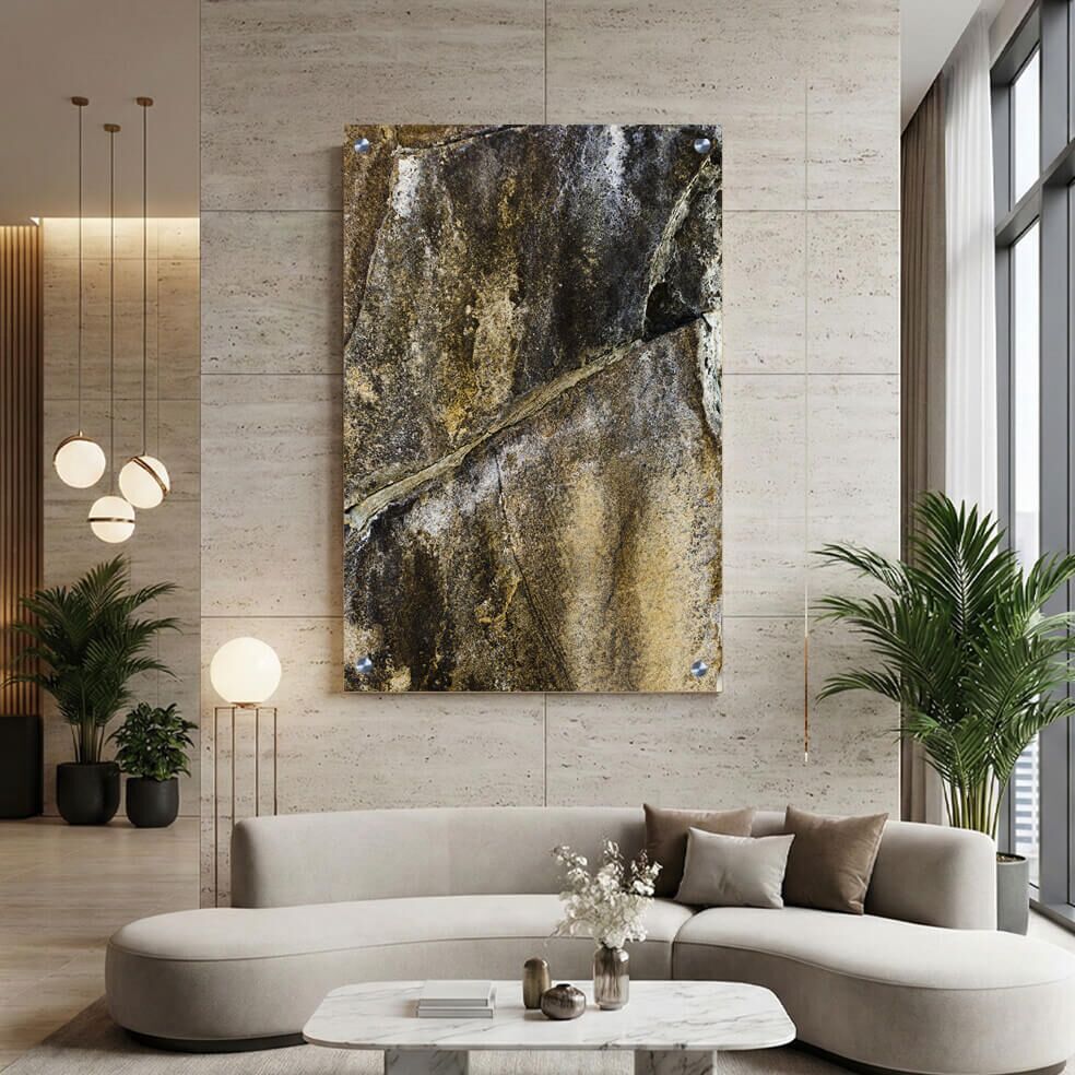 תמונה על זכוכית זו מציגה מרקם אבן טבעית בגוונים עדינים של אפור, לבן וזהב עם ורידים ייחודיים היוצרים קומפוזיציה אלגנטית ומרגיעה. הדפסה על זכוכית מאפשרת להביא לידי ביטוי את כל העומקים והגוון המורכב של האבן, מה שהופך את תמונת הזכוכית ליצירת אמנות מושלמת לקישוט הבית. תמונות זכוכית לסלון שמציגות מרקמי אבן טבעית בסגנון כזה מביאות תחושה טבעית ומרווחת, ומוסיפות תחכום ויוקרה לכל חלל. תמונות זכוכית אלו מתאפיינות בפורמט מלבני לאורך, המעניק מראה מודרני ומתוחכם למרחב. מוצר זה מתאים לאוהבי עיצובים טבעיים ועדינים, המדגישים אלמנטים טבעיים ומרקמים אותנטיים באמצעות תמונה על זכוכית איכותית.