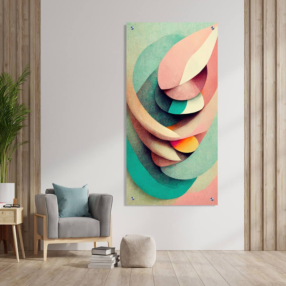 תמונה על זכוכית המדגימה קומפוזיציה אבסטרקטית ומרשימה, הכוללת שכבות מעוגלות בצבעים טורקיז, ורוד סלמון ושמנת. ההדפסה על זכוכית תוכננה כיצירה פנורמית לאורך, המשלבת עיצוב רך וזורם, המתאים מאוד לעיצוב מודרני ורך. תמונות זכוכית לסלון מסוג זה מוסיפות נופך ייחודי וחיים לחלל, ומדגימות איכות וניואנסים צבעוניים המעשירים כל קיר. תמונת זכוכית בעלת קווים מעוגלים וקומפוזיציה מופשטת מתחברת בצורה טבעית לעיצוב רגוע ואסתטי, המעניק אווירה נעימה והרמונית בסלון. האיזון בין הצבעוניות והפשטות מקנה לתמונה תחושה של עומק ותנועה, מושך את העין ומוסיף עניין וקסם לעיצוב החלל.