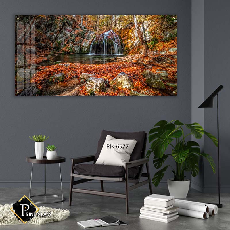 תמונה פנורמית שממחישה נופי טבע שקטים עם מפל קטן הזורם בעדינות ביער סתווי. העלים הכתומים הבוהקים והרגיעים משתלבים עם המים השקטים ליצירת אווירה של שלווה טבעית ואיזון. אידיאלית כלכבוד חזותי במשרד, תמונת זכוכית זו מעניקה תחושת רוגע והשראה ומאפשרת התחברות לטבע גם בסביבה מקצועית. הדפסה על זכוכית מדגישה את הצבעים החמים והמרגיעים של היער, ומעניקה עומק וחדות לתמונה. תמונות זכוכית למשרד מהסוג הזה הן פתרון סטיילינג מודרני המשלב איכות ויופי, ויוצרות חלל עבודה עם תחושת השראה והרמוניה.