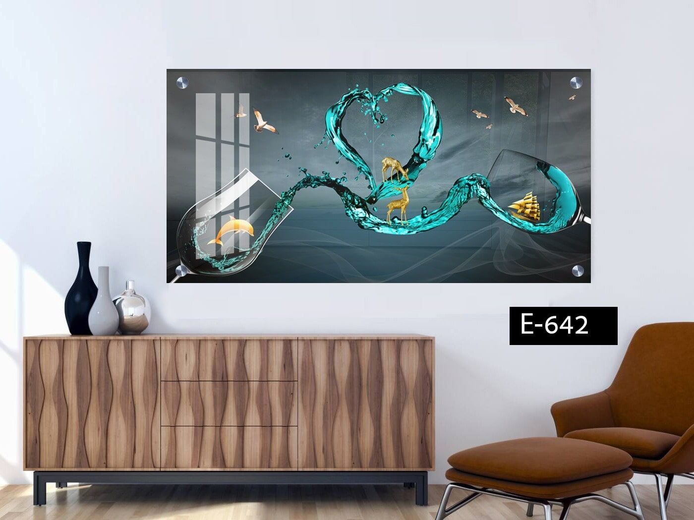 תמונת זכוכית לסלון – e-642. תמונה על זכוכית איכותית בעיצוב מרהיב המודפסת ישירות על זכוכית מחוסמת בטכנולוגיית UV מתקדמת. הדפסה על זכוכית זו מעניקה עומק, חדות ותחושת תלת מימד עוצמתית במיוחד. תמונת זכוכית זו משתייכת לקולקציה ייחודית של תמונות מודפסות על זכוכית, המיועדות לעיצוב מרהיב של הבית או העסק. תמונות זכוכית הן הבחירה האידיאלית למי שמחפש שילוב של יוקרה, חדשנות ונוכחות עיצובית יוצאת דופן. המוצר ניתן להתאמה אישית מלאה – ניתן לשנות גודל, צבעוניות או לבקש עיצוב ייחודי בהתאם לצרכים שלכם. תמונה זו מהווה מתנה מושלמת לחנוכת בית, משרד חדש, או כפריט עיצובי מרשים לכל חלל. השילוב עם תמונות פנטזיה יוצר אווירה קסומה ומעוררת השראה. הדימוי של האייל מוסיף כוח, יציבות ונוכחות.
