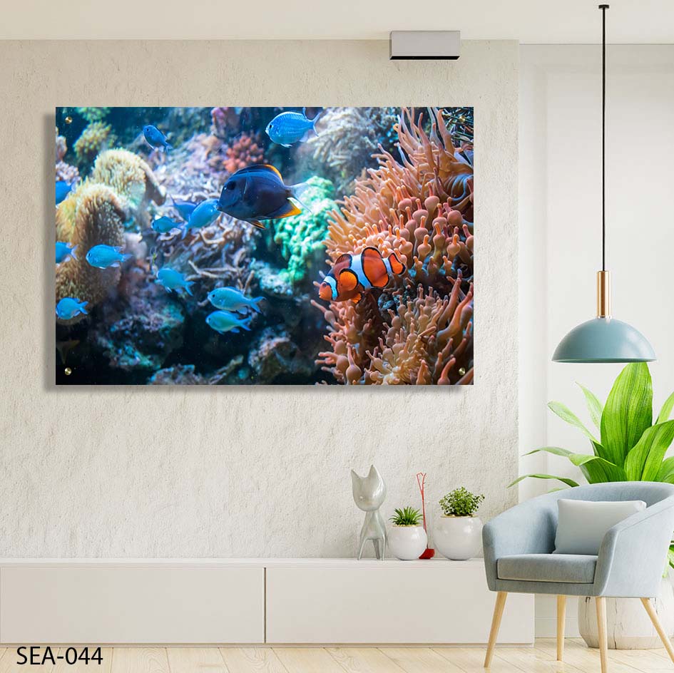 הדפסה על זכוכית זו מציגה תמונת זכוכית מרהיבה של אלמוגים צבעוניים ודגי נמו בים טרופי מלא חיים. בתמונה זכוכית ניתן להבחין בגוונים חמים ועזים של כחול, כתום, צהוב וירוק שמדגישים את היופי של הטבע התת-ימי. תמונות זכוכית לסלון מסוג זה מוסיפות נופך חי ותוסס לכל קיר, ומציעות קומפוזיציה מלבנית לרוחב המאפשרת הצגת המוטיב בצורה מרשימה וונציה. תמונת זכוכית זו משדרת אווירה נינוחה וקסומה של עולם תת-ימי צבעוני, שגם אוהבי טבע ימלאו בהשראה והשקט. תמונות זכוכית בהדפסה איכותית מביאות אלמנטים של חיות וצבע לחדר, ומאפשרות שילוב מושלם בין אומנות ועיצוב מודרני.