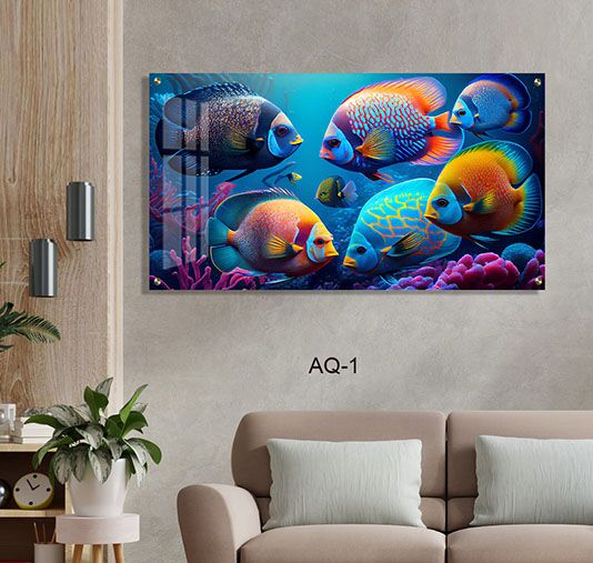 תמונה על זכוכית מרהיבה המציגה קבוצת דגי אלמוגים בצבעים עשירים וחיים הנמצאת על רקע תת-ימי כחול עמוק. ההדפסה על זכוכית יוצרת מראה מבריק ומיוחד המדגיש את הפרטים המדויקים והצבעוניות של דגים ואלמוגים לאורך התמונה המלבנית לרוחב. תמונת זכוכית זו משדרגת כל קיר בסלון בהיכנסו אווירה של טבע וים קסום, בעזרת תמונות זכוכית לסלון איכותיות ומרהיבות. זוהי תמונה שמביאה חיים וצבע לכל חלל ומשלבת הרמוניה טבעית עם עיצוב עכשווי, המתאימה במיוחד לאוהבי האוקיינוס ותמונות יפות של ים. דרך הדפסה על זכוכית מתקבלת תמונת זכוכית עמידה, ברורה ומרשימה לטווח ארוך.