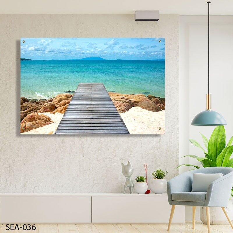 תמונה על זכוכית המשלבת שביל עץ המוביל אל חוף ים בצבעי טורקיז מרהיבים עם חול זהוב חמים. הקומפוזיציה המלבנית לרוחב מדגישה את ההרמוניה שבין צבעי הטבע והמרחב הפתוח, ויוצרת אווירה מרגיעה וסטיליסטית. הדפסה על זכוכית זו מביאה לעולם תמונות זכוכית לסלון מראה ייחודי, בהיר ונקי, המתאים להוספת צבע וחיים לכל חלל. תמונת זכוכית זו מציעה איכות וחדות שאין דומה לה, ויכולה לשמש כנקודת מוקד עיצובית המשלבת את היופי של הטבע עם טכנולוגיה מודרנית של תמונות זכוכית.