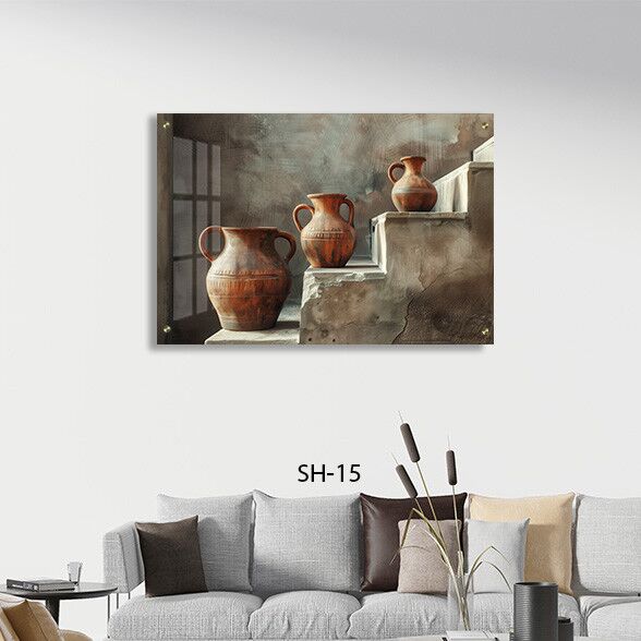 הדפסה על זכוכית מרהיבה המציגה שלושה כדיי חרס בגדלים שונים המסודרים על מדרגות אבן בסגנון כפרי וריאליסטי. תמונת זכוכית זו משלבת קומפוזיציה מלבנית לרוחב שמעניקה תחושה טבעית ופסטורלית, מתאימה במיוחד לתמונות זכוכית לסלון המעוניינים להכניס אלמנט אותנטי וחם. הצבעים והפרטים המדויקים משקפים את הטקסטורה והחומר האורגני של הכדיים והאבן, ויוצרים הדפסה חיה ועמוקה שנותנת מימד ייחודי לכל תמונת זכוכית בסלון.