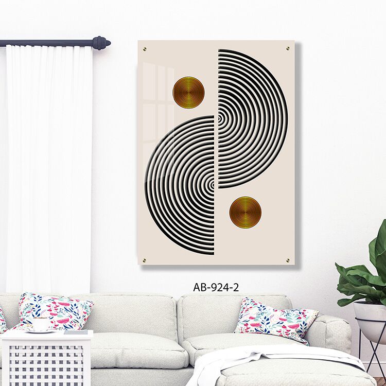 גלה את היופי המודרני עם הדפסה על זכוכית זו שמציגה עיצוב גאומטרי אינטריגנטי הכולל מעגלים שחורים וזהובים על רקע בהיר. תמונת זכוכית זו משלבת בקומפוזיציה מלבנית לאורך, המעניקה מראה אלגנטי ומעודן, המשלב בין הקלאסי למודרני. אידיאלית כתמונה על זכוכית לקישוט ועיצוב, תמונות זכוכית לסלון כמו זו מביאות נופך של עיצוב מינימליסטי עם דגש על צבעים מנוגדים באופן הרמוני. בחרו בתמונה על זכוכית מסוג זה להוספת טאץ' מיוחד ומרהיב למרחב שלכם.