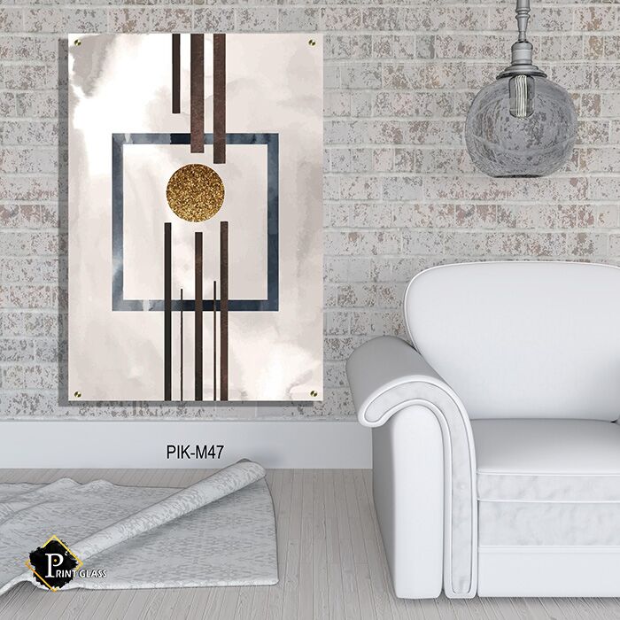 תמונה זו מציגה עיצוב מודרני בגווני זהב ושחור, המתמקד בצורה גאומטרית מלבנית לאורך הכוללת עיגול מוזהב בולט לבין קווים אנכיים וריבוע מתוחכם. התמונה על זכוכית יוצרת שילוב קלאסי בין מינימליזם לאלמנטים מרשימים של קו וצורה. הדפסה על זכוכית זו מציעה איכות ועמידות מיוחדת, המתאימה לעיצוב מודרני וקלאסי. תמונות זכוכית לסלון מסוג זה מאפשרות להוסיף נגיעה של אלגנטיות ואור ייחודי לחלל. תמונות זכוכית אלו מציגות מלאכת מחשבת ויזואלית העושה שימוש בהדפסה על זכוכית לשדרוג האווירה בכל חלל.