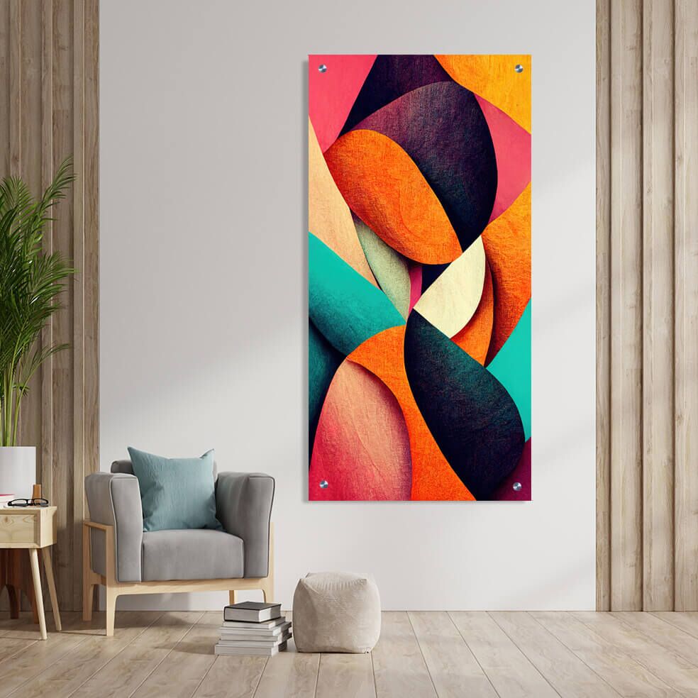 תמונה על זכוכית המשלבת קומפוזיציה אבסטרקטית עם צורות אליפטיות גדולות בצבעים חמים ומרהיבים של כתום, שחור, טורקיז ואדום-ורוד. שילוב הצבעים והצורות היוצא דופן יוצר אווירה ייחודית ומשדרת דינמיות ועניין ויזואלי, המתאים כתמונת זכוכית לסלון שמוסיפה טאץ’ עיצובי מודרני ונועז. הדפסה על זכוכית איכותית המדגישה את צבעי התמונה ומעניקה עומק וחדות יוצאי דופן לתמונות זכוכית אלו. שילוב של צורות אליפטיות מפוזרות בפנורמית לאורך, מעניק תחושה של זרימה והרמוניה, ומגביר את ההשפעה האמנותית של היצירה.