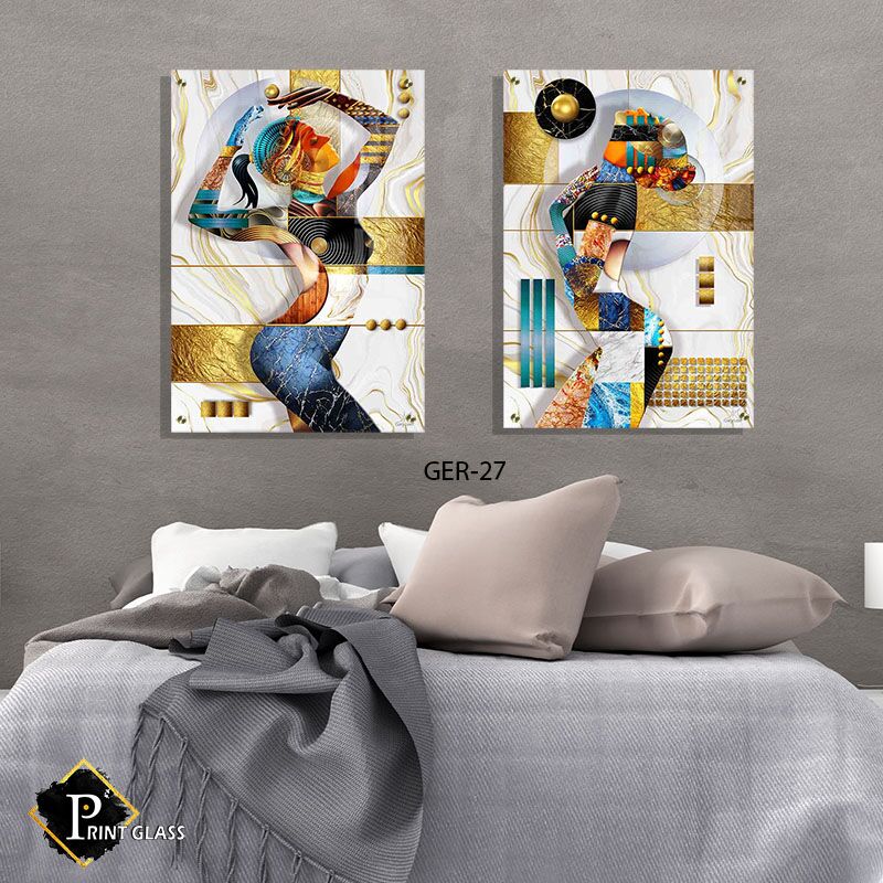 תמונות זכוכית לסלון של נשים בסגנון גיאומטרי