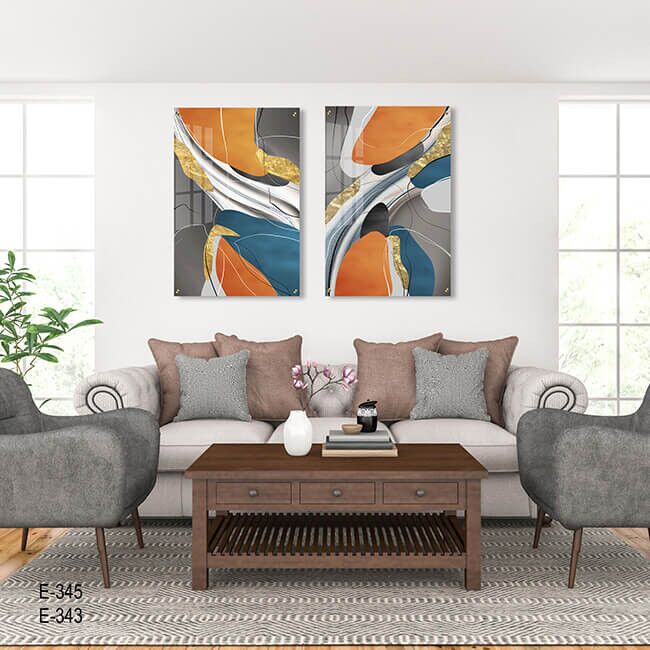 תמונת זכוכית זו מציגה זוג תמונות עם צורות מופשטות בשלל צבעים מרהיבים הכוללים כתום, כחול, אפור וזהב. ההדפסה על זכוכית יוצרת מראה מודרני ואלגנטי, המשלב תוכן אמנותי ייחודי בהשתקפות מדויקת של הגוונים והקומפוזיציה. תמונות זכוכית לסלון אלו הן בחירה מושלמת להוספת צבע וחיות לסביבה עם סגנון אבסטרקטי ומודרני, המשתלב בקלות בעיצוב הבית. תמונה על זכוכית זו מדגישה את השילוב המרהיב בין הצורות והצבעים ומוסיפה אווירה של יצירתיות ותחכום לכל חלל. תמונת זכוכית משדרת איכות ויפה לעין וניתנת לתלייה כנגד הקיר להדגשת האומנות בכל סלון.