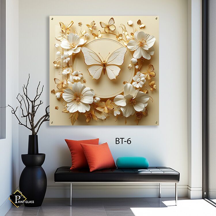 תמונה מרובעת מלבשת אווירה של עדינות ואלגנטיות עם פרפר זהב הממוקם במרכזו של זר פרחים לבנים. בשילוב צבעים מתוחכם של זהב לבן, ההדפסה על זכוכית יוצרת מראה זוהר ומכובד, אשר מתאים להוסיף קורטוב של טבע ויופי לכל סלון. תמונת זכוכית זו מהווה דוגמה איכותית ליצירה של תמונות זכוכית לסלון שמשלבת טבע ואמנות בצורה הרמונית. תמונות זכוכית עם מוטיב פרפר ופרחים מעניקות לחדר תחושה של רוגע וקלילות. הבחירה בתמונה על זכוכית לעיצוב הפנים, מספקת עמידות ונראות ייחודית, והופכת כל חלל למיוחד ומזמין. קנו עכשיו תמונת זכוכית מרהיבה זו להוספת נגיעה של יופי וטבע לביתכם.