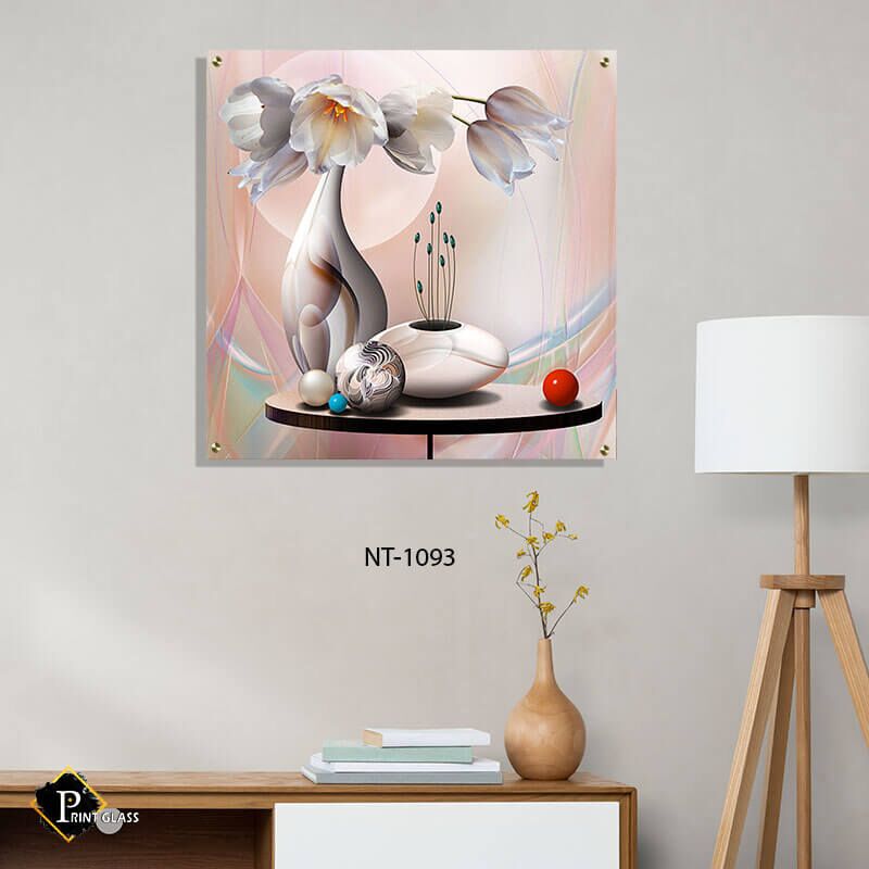תמונה לפינת אוכל אגרטלים ופרחים. דגם NT-1093 משלבת עידון. יוקרה והרמוניה בעיצוב אחד מרשים. ההדפסה מתבצעת על זכוכית מחוסמת אקסטרה־קליר בעובי של 6 מ״מ. מה שמעניק לתמונה עומק חזותי, חדות צבעים וברק יוקרתי הנשמר לאורך שנים.