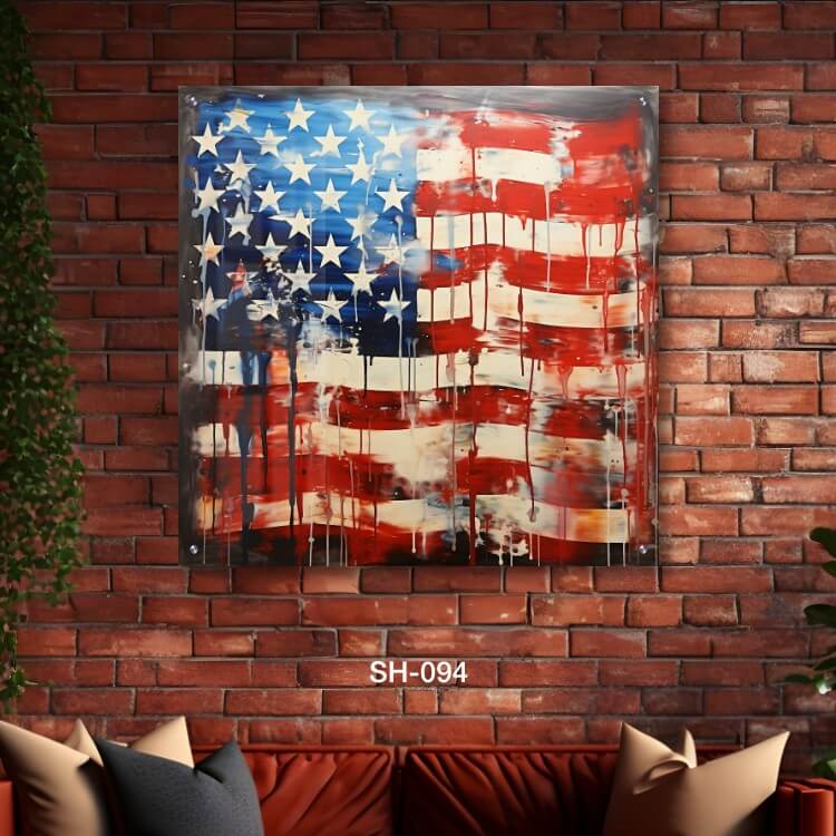 תמונת זכוכית לסלון – SH-094. תמונה על זכוכית יפה של דגל ארה"ב נוזל. מתאים גם לעיצוב הבית בצורה יוקרתית וייחודית. זכוכית מחוסמת 6מ"מ הדפסה על זכוכית בטכנולוגיה UV חדשנית.